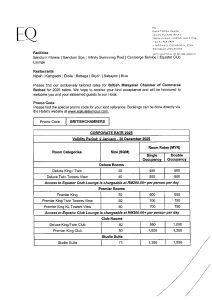 Your organisation’s choice of EQ as its preferred Hotel means that the city’s finest accommodations, business facilities and award winning dining venues are yours to make an impression with. Whether you are building rapport with a client by treating them to an exceptional dining experience, or increasing business productivity at their state-of-the-art meeting venues, you’ll find EQ ready to deliver world-class, award-winning Mlayasian hospitality each step of the way with their extensive facilities and dining options.