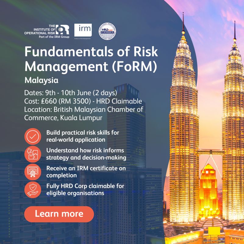 We’re pleased to share new dates for their Fundamentals of Risk Management (FoRM) course in Kuala Lumpur this June, following a strong response to their previous session.